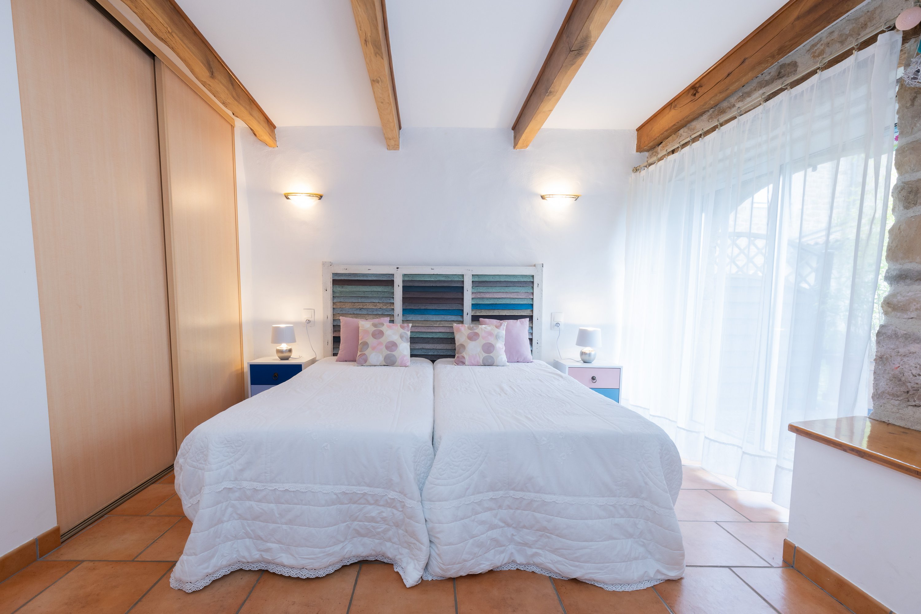 Il y a 2 chambres (l’une avec un lit de 140 cm, l'autre avec deux lits jumelables de 80 cm), une salle de d’eau avec douche à l'italienne ainsi qu’un WC indépendant. Prêt de matériel de puériculture sur demande (chaise haute, lit bébé, baignoire, table à langer).
